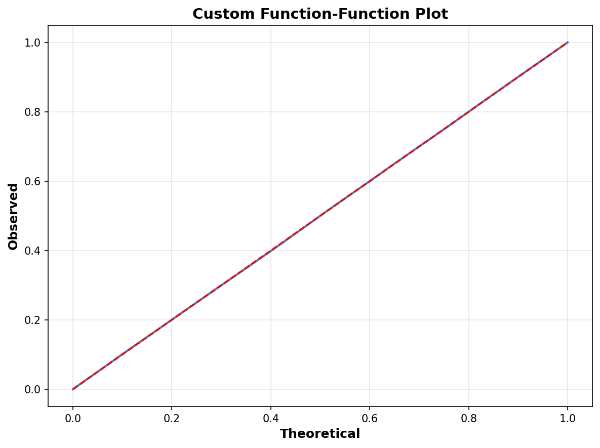 # Generate overdispersed count datanp.random.seed(123)n = 500x = np.random.normal(size=n)mu = np.exp(1 + x)# Add overdispersion via negative binomialsize = 2prob = size / (size + mu)y = np.random.negative_binomial(size, prob)# Fit Poisson (wrong)X = sm.add_constant(x)model_pois = sm.GLM(y, X, family=sm.families.Poisson()).fit()# Fit Negative Binomial (correct)model_nb = sm.NegativeBinomial(y, X).fit(disp=0)# Comparefig, axes = plt.subplots(1, 2, figsize=(12, 5))ffplot(model_pois, ax=axes[0])axes[0].set_title("Poisson")ffplot(model_nb, ax=axes[1])axes[1].set_title("Negative Binomial")plt.tight_layout()plt.show()# Generate negative binomial data